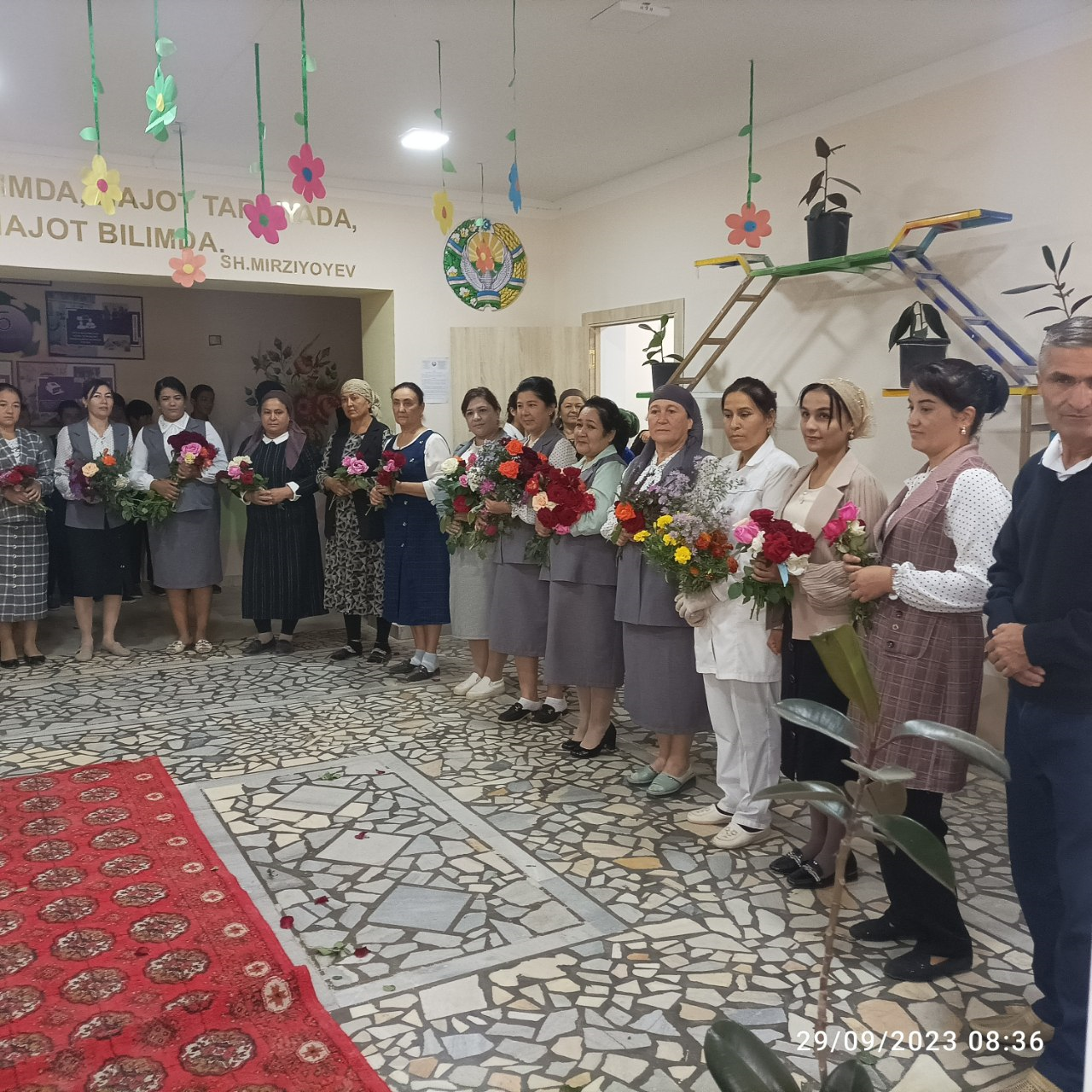 Bu ulug` va sharafli ayyom bizning maktab jamoamizda ham ajoyib kayfiyatda nishonlandi. o`quvchilar qo`llarida gul va sovg`alar bilan ustoz-murabbiylarni qarshilab olishdi. Ertalabki xushkayfiyat kun davomida barchani birdek baxtiyor qildi.
