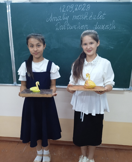 Bu esa yuqori sinf o`quvhilari orasida tashkil etilgan texnologiya fani to`garagidan fotolavha. Ko`rib turganimizdek ushbu suratda o`quvchilar texnologiya fanidan amaliy mashg`ulotlar bilan bandlar. Qizlarning pazandalik mehmondorchilik qiziqishlariga oid mahorat darslari o`rgatilmoqda. Bu ,albatta, o`z navbatida qizlarning kelajak hayotlarida ham as qotadi. Texnologiya to`garaklarida nafaqat qizlar, balki o`g`il bolalar ham o`z qiziqishlari doirasida hunarmandchilik va duradgorlik mahoratlarini ko`rsatishga harakat qilishdi. Bu fan o`quvchilar orasida ayniqsa qiziqishlari va ishtiyoqlari yuqori bo`lgan to`garaklar qatoriga kiradi. Shu sabab o`gil bolalar va qiz bolalar juda aktivlar.
