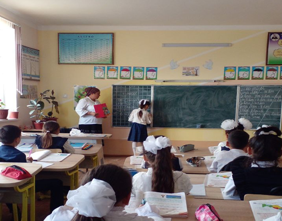 Ushbu suratlarda esa 4-a sinfda ona tili fanidan mustahkamlovchi to`garakda o`quvchilarning qanday qatnashayotganliklarini ko`rishimiz mumkin. Ustozlarining to`garakda ona tilidan darsda o`zlashtirilishi murakkabroq bo`lgan mavzularni osonlashtirib turli xil qiziqarli metodlardan foydalanib o`rgatyotganining guvohi bo`lishimiz mumkin.